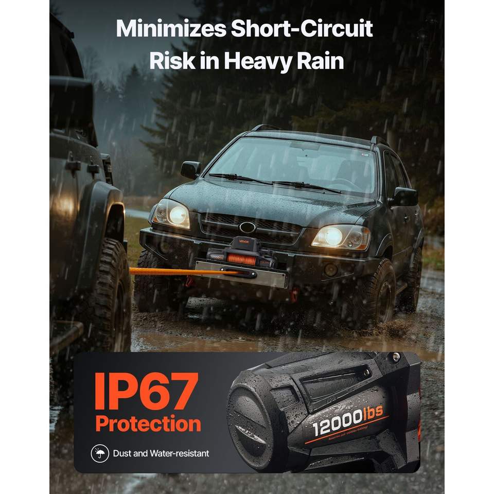 Verricello Elettrico 12V DC con Capacità di Carico di 12000 Libbre, Corda Sintetica da 92 Piedi, Controllo Remoto Wireless e Cablato, Verricello per Camion