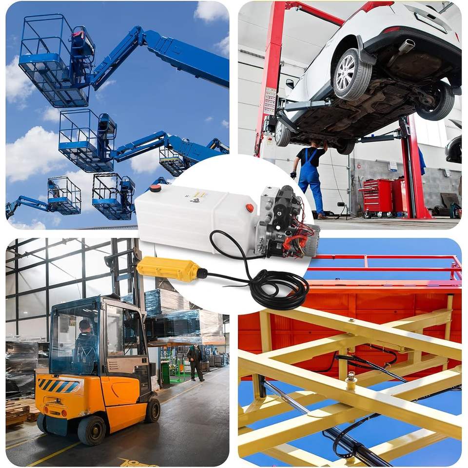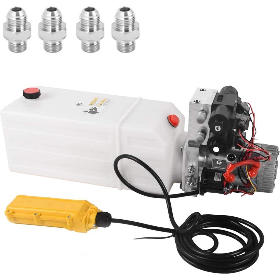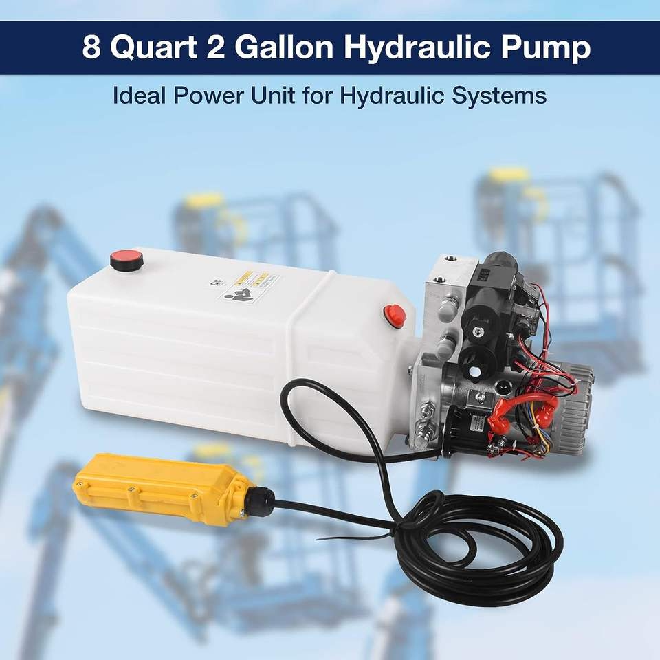 12V DC Hydraulic Power Unit 8 Quart Double Acting Double Solenoid Pump Plastic Reservoir for Dump Trailers Car Lifting Platforms