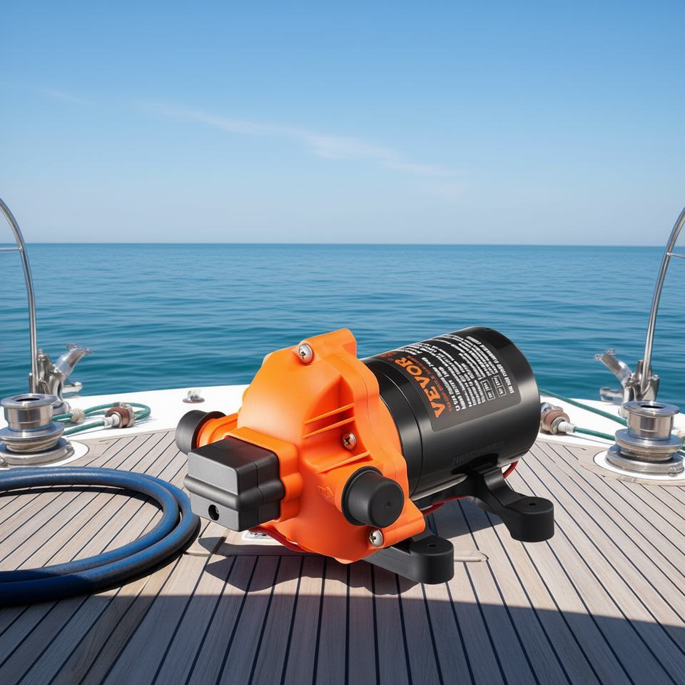 Pompa Acqua a Diaframma 12V 3.5GPM 13.25L/min per Uso Marino con Pressostato a 3 Camere per Imbarcazioni