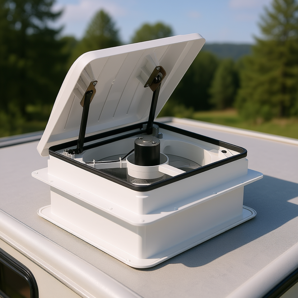 Ventilatore da Tetto per Camper 12V, 36 Pollici, 4 Velocità, Reversibile, Silenzioso, Apertura Manuale, Pale in Plastica Bianca, Motorizzato per Camper e Veicoli da Carico