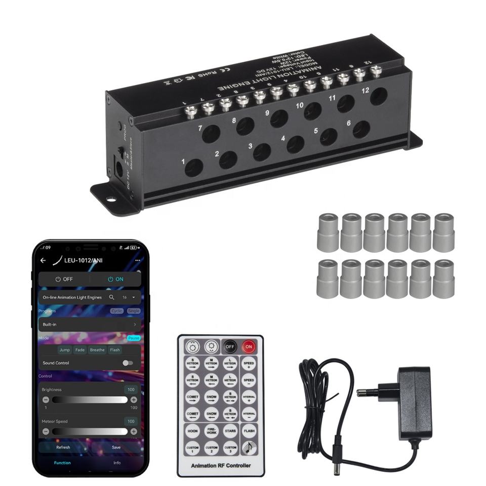Motore Luminoso per Animazioni 12W con Controllo Tramite App Mobile, Sorgente Luminosa a Fibra Ottica a LED Bianchi a 12 Porte per Effetto Stelle Cadenti su Soffitti Stellati