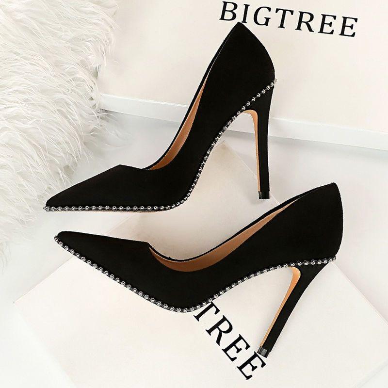 12cm Pointed Toe Heels Ladies Heeled Pumps Womens High Heel Shoes with Studs