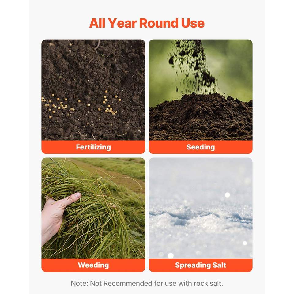 Spandiconcime a Spinta Manuale da 3,6 m con Pneumatici All-Terrain da 33 cm, Controllo del Flusso Regolabile, Capacità di Carico Fertilizzante 59 kg