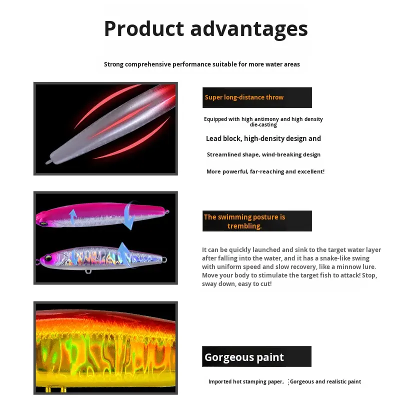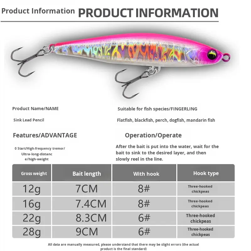 12g 16g 22g 28g Saltwater Casting Sinking Vibrating Pencil Lure Artificial Bait Freshwater Sea Fishing Mandarin Fish Bass HXPE01