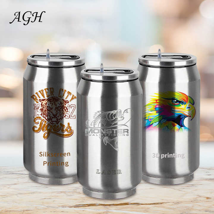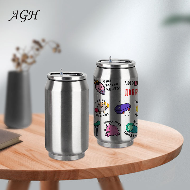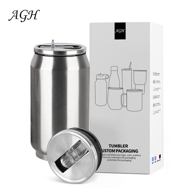 12oz 350ml Lattine di Cola Doppia Parete in acciaio inox vuoto isolato cola a forma di bottiglia di bicchieri con paglia coperchio