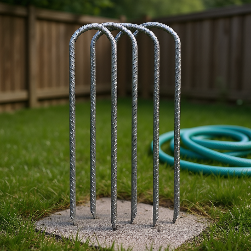 Picchetto a U in Acciaio Filettato da 12 Pollici, Ancoraggio Durevole Antivento per Tubi, Ancoraggio per Calcestruzzo, Diametro 3/4 Pollici, Elettrozincato