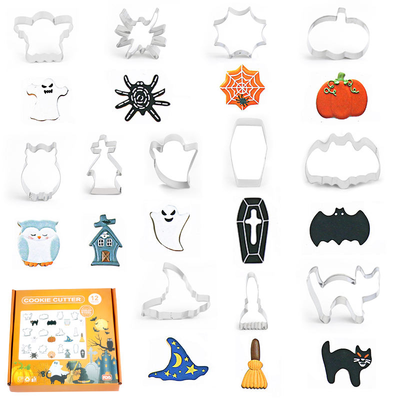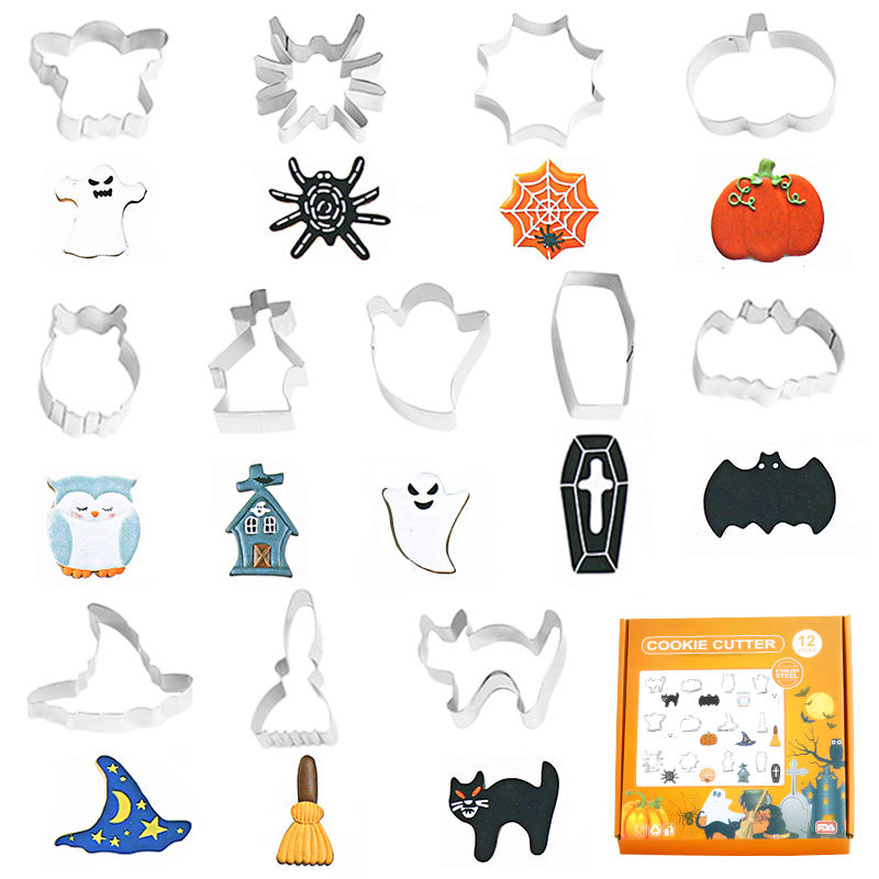 12 pezzi 3D Halloween Cookie Cutter in acciaio inox taglio caramelle biscotto stampo strumenti di cottura per Halloween decorazioni per la casa