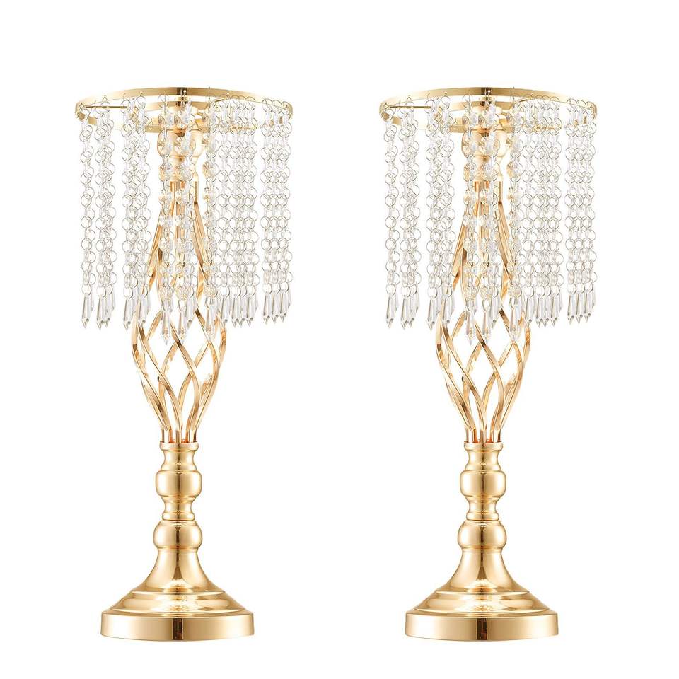 Set di 12 Supporti Floreali in Metallo Dorato da 49cm/19.3 Pollici, Vasi per Fiori in Cristallo, Eleganti Decorazioni da Tavolo per Matrimoni