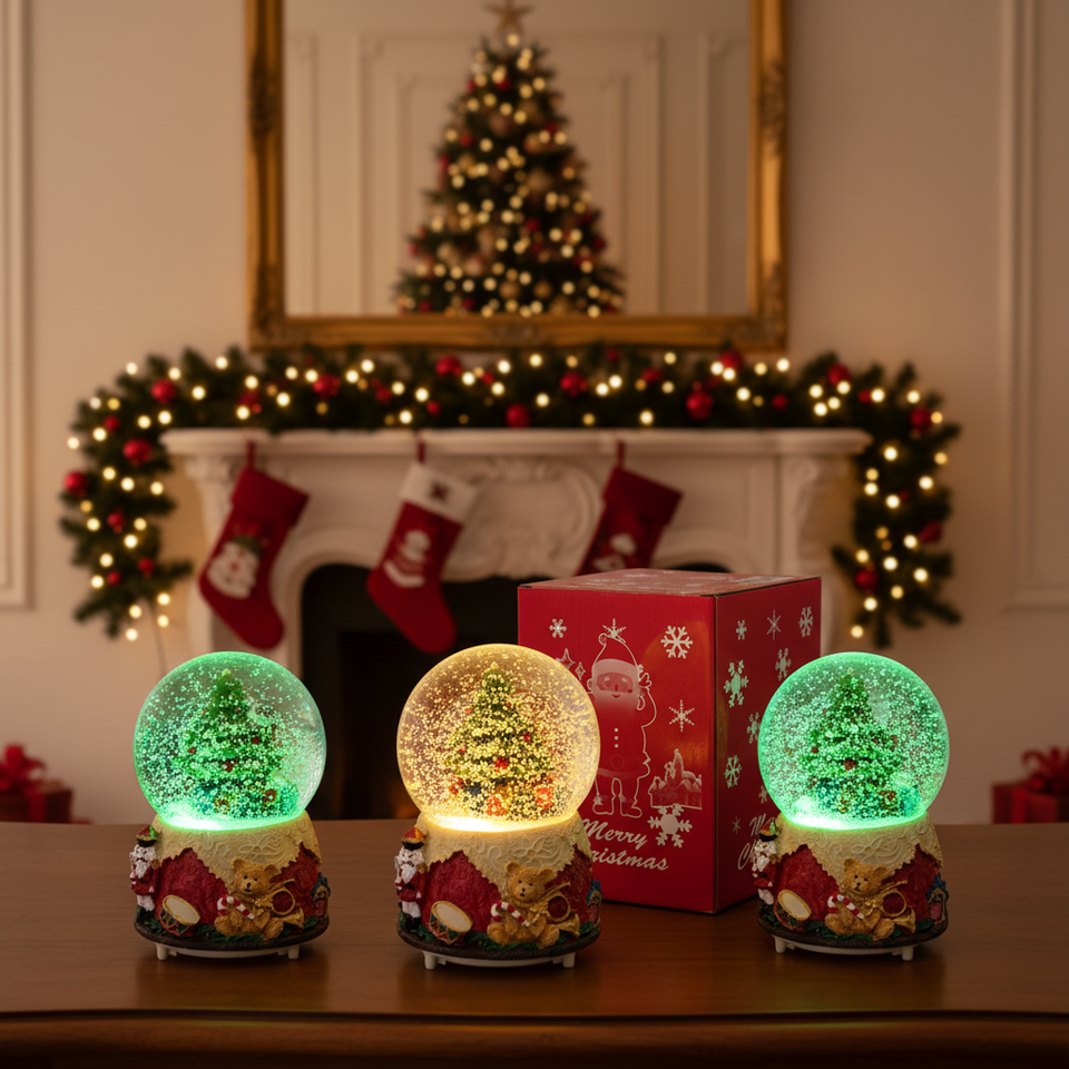 12pcs/CS Christmas Crystal Ball 4\"X6\" with Light & Sound Elegant Globes for Festive Decorations