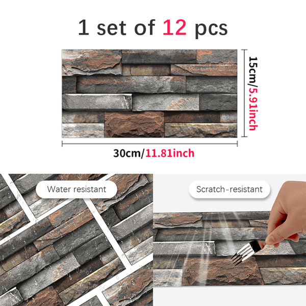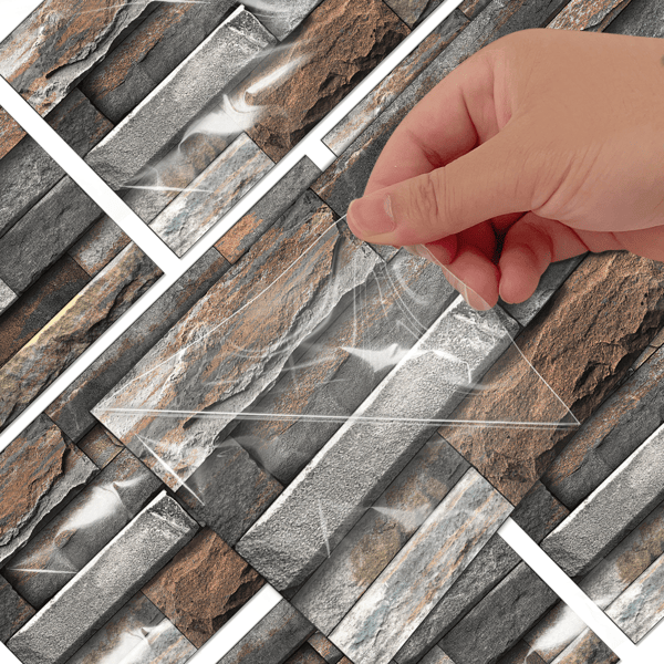 12pcs Dark Brown Marble Stone Peel Stick Wallpaper PVC Water Resistant Self-Adhesive Kitchen Bathroom Wall Decoration Easy DIY