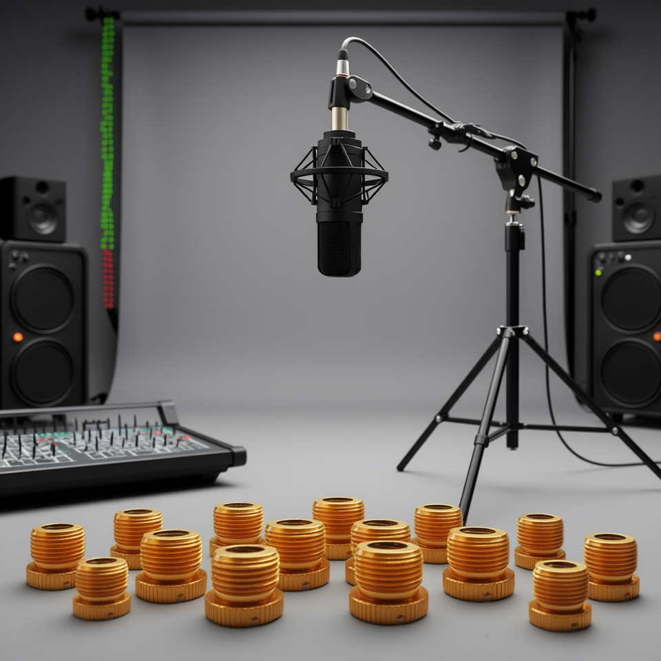 Mic Stand Adapter 5/8 Male 3/8 Female Aluminum Alloy Golden 12pcs for Microphone Stands Boom Arms Camera Tripod
