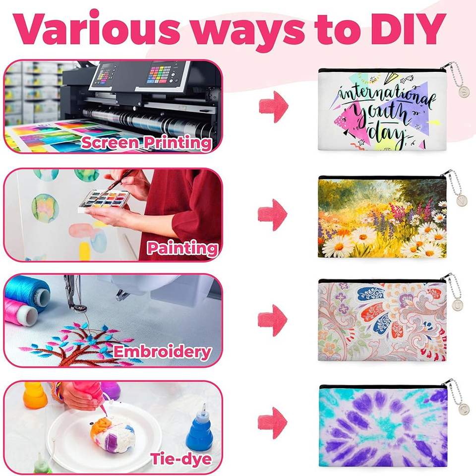 Set 12 Pochette in Tela Verniciabile, 26 Ciondoli a Forma di Lettera, 10 Catene, Borsa Cosmetica Multiuso Fai-da-Te per Organizzare il Trucco