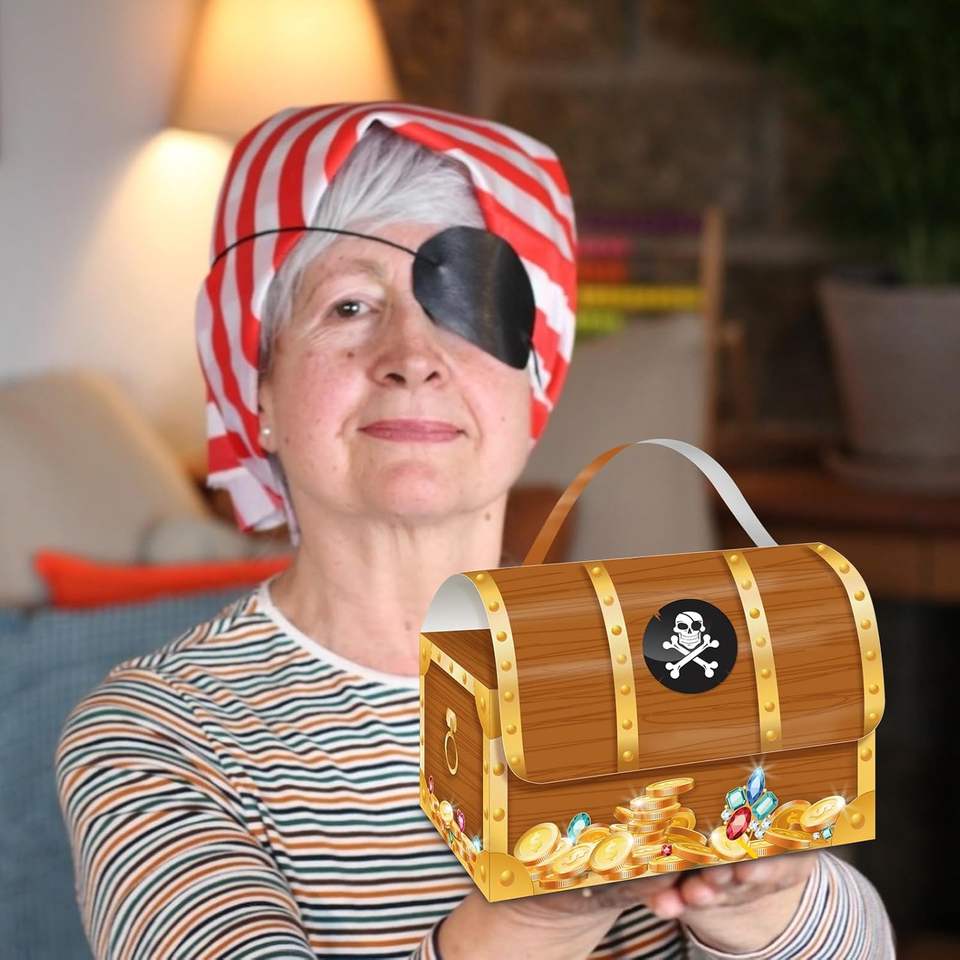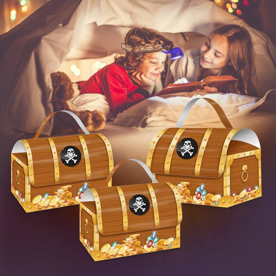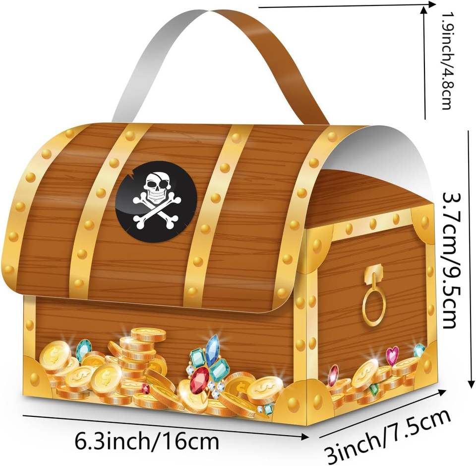 12 pezzi di scatole di bombole per feste a tema pirata scrigno per il gioco di caccia al tesoro con Goodie Candy con stampa a laminazione opaca