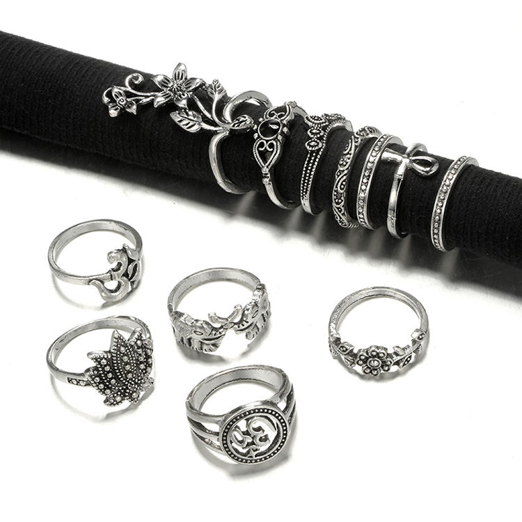 12 pz/set Boho Vintage Punk oro argento pietra Midi anelli per le donne bohémien fiore animale elefante anello Set gioielli