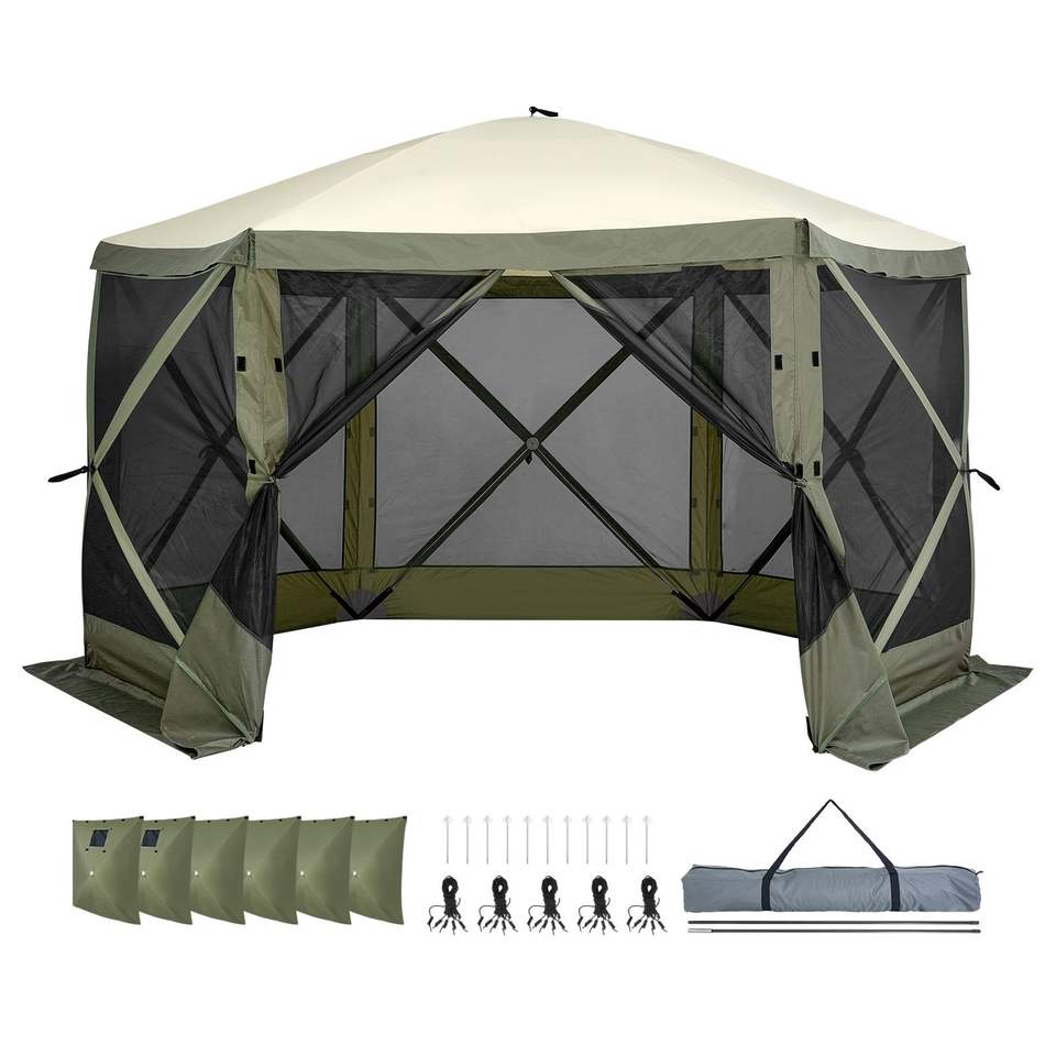 Gazebo Pop-Up 12x12 piedi con 6 Finestre in Rete Rimovibili per la Privacy e Protezione dal Vento, Tenda a 6 Lati con Zanzariera
