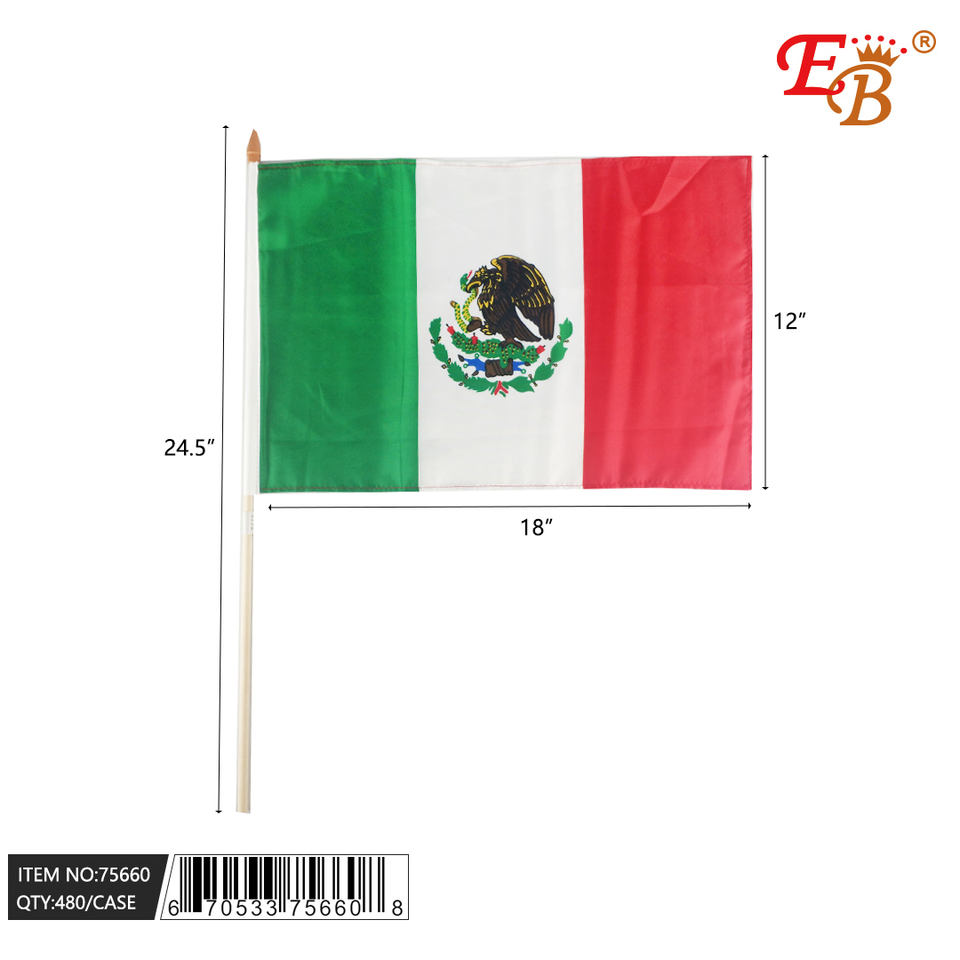 12x18\" Mexico Hand Flag Digital Printing Car Flag Polyester and Silk Material 480PCS 40DZ/CS