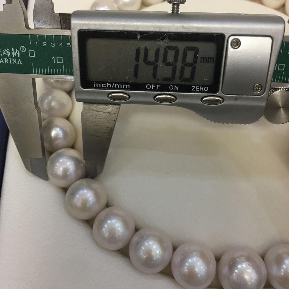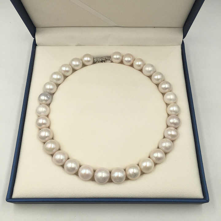 13-14 mm Biggest Round Nature Freshwater Pearl Choker Necklace, Nice Heart CLASP for Women, Knotted Beads