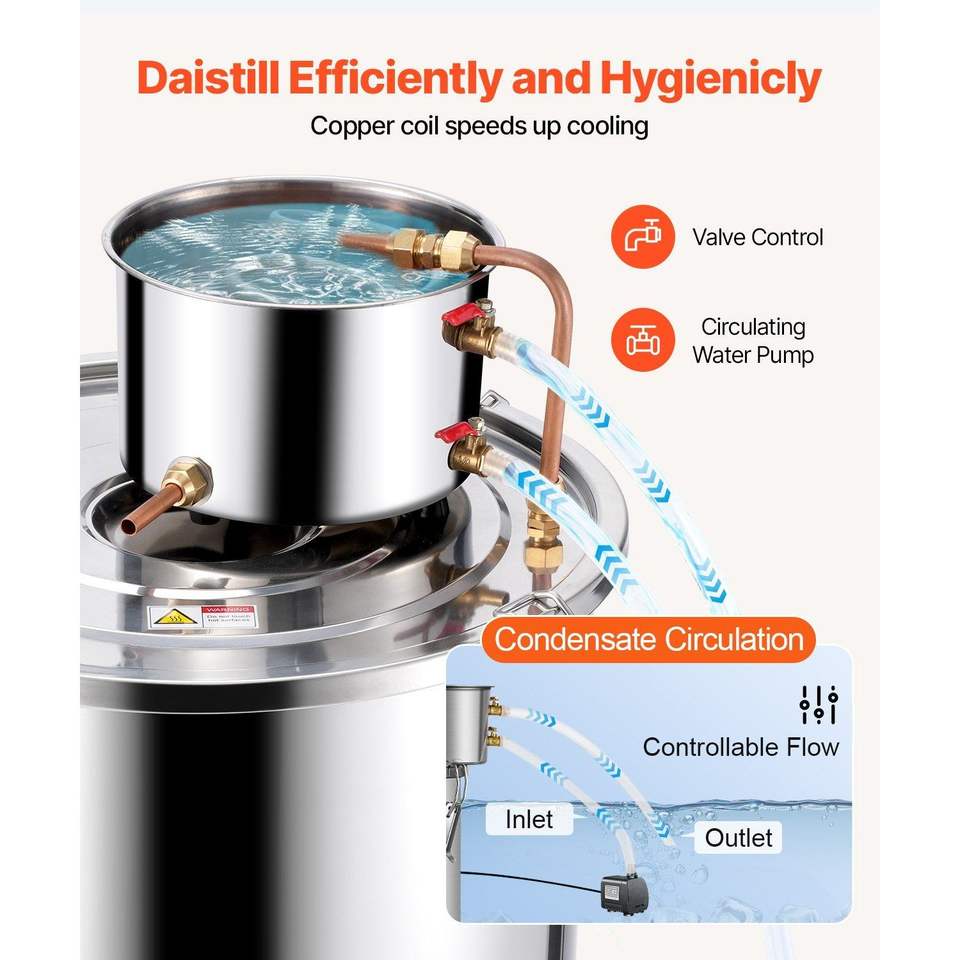 Kit di Fermentazione Domestica in Acciaio Inox da 50 L (13,2 Galloni) con Serpentina in Rame per Distillazione e Raffinazione di Alcol e Acqua