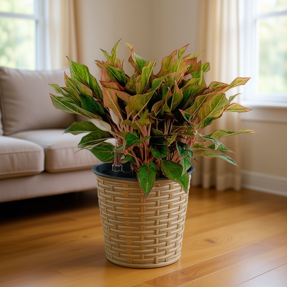 Natural Round Self Watering Wicker Planter 13.4 In Indoor Outdoor Smart Pots Planters