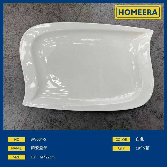 13 Inch Bulk Wholesale Porcelain Serving Plate 34x22cm Ceramic Tableware New Model with Decal Printing for Hotels Restaurants