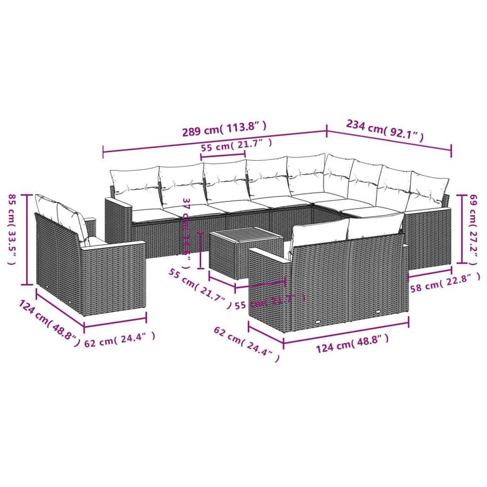 Set di divani da giardino in polyrattan nero da 13 pezzi con cuscini per divani da giardino