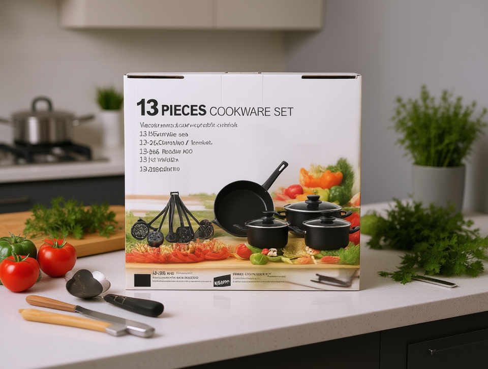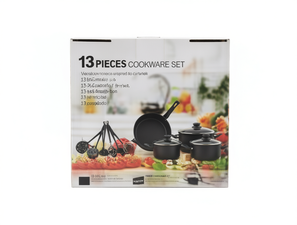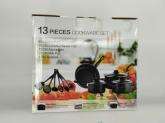 Set di pentole da 13 pezzi antiaderenti in metallo con coperchi in vetro per fornelli a gas e a induzione, design moderno, manici in acciaio inossidabile