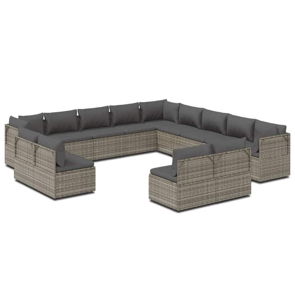 Set salotto da 13 pezzi in Poly Rattan grigio con cuscini per rilassarsi in giardino