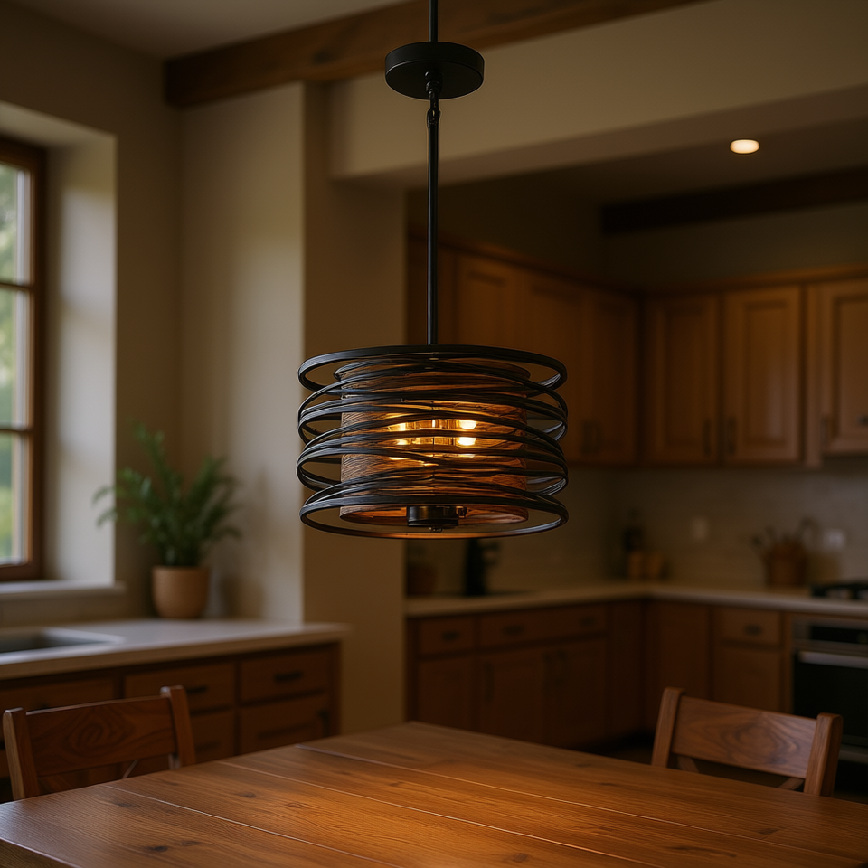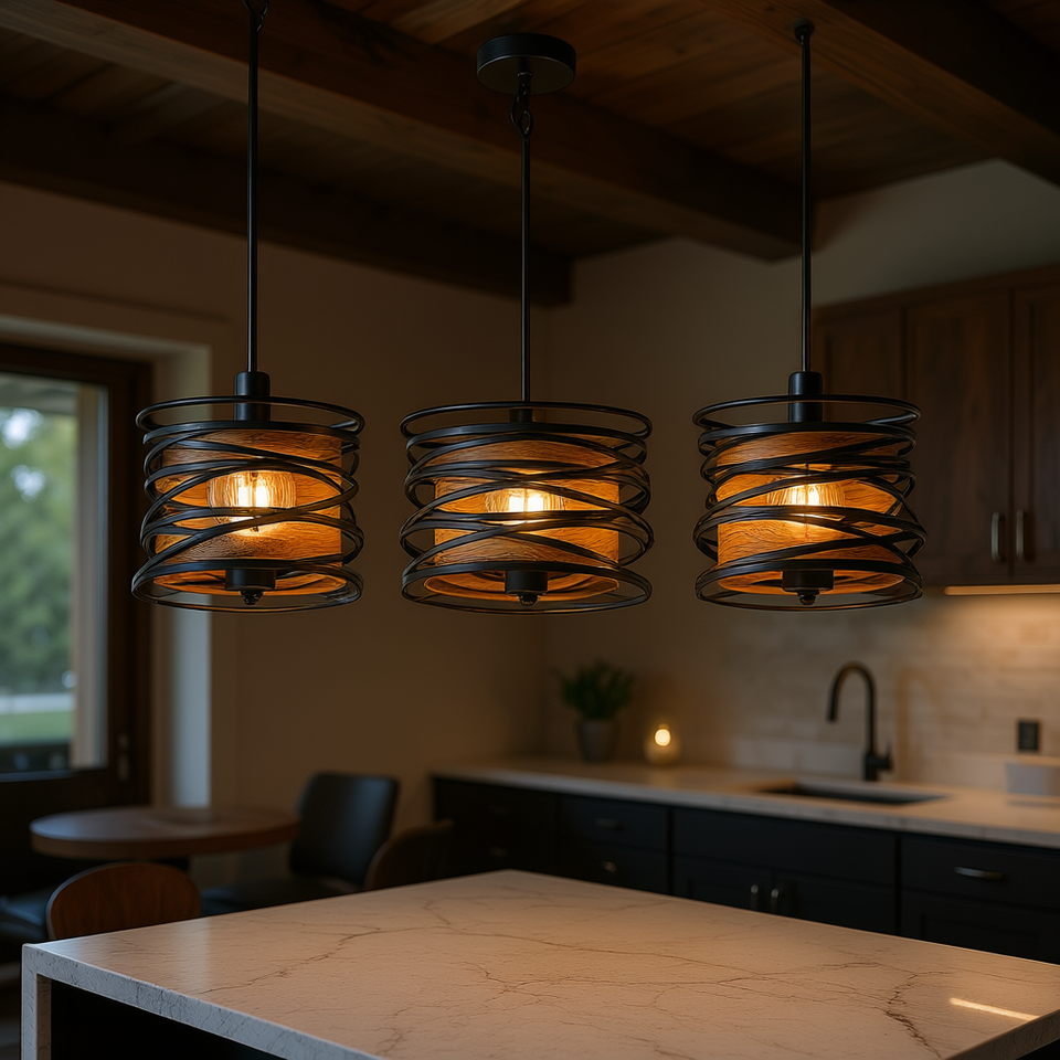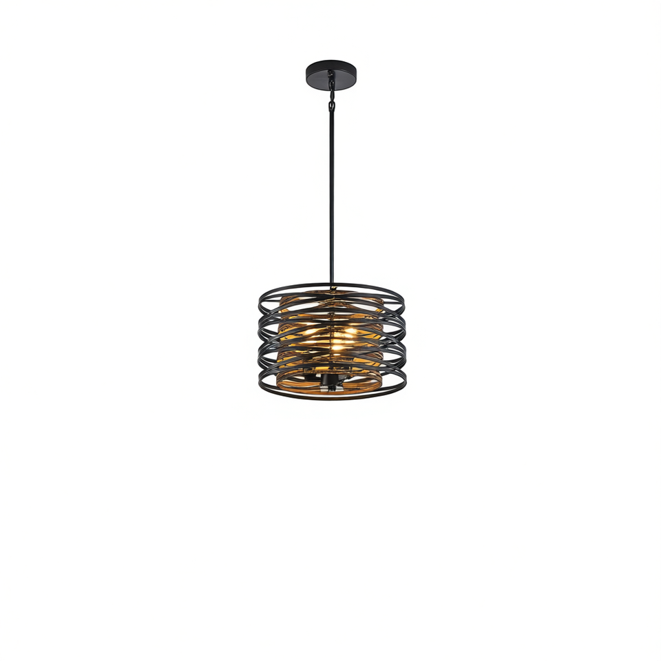 Lampadario a sospensione rustico industriale a 3 luci, con paralume a tamburo in gabbia metallica di noce nero, per isola cucina e sala da pranzo