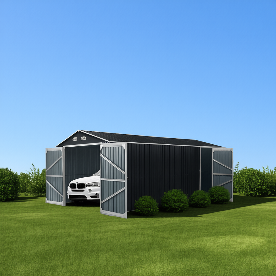 Capannone in Metallo D0100XUB507 13 x 20 Piedi con Doppie Porte Frontali, Capacità di Stoccaggio 240 Piedi Quadrati, Stile Industriale con Porta Laterale