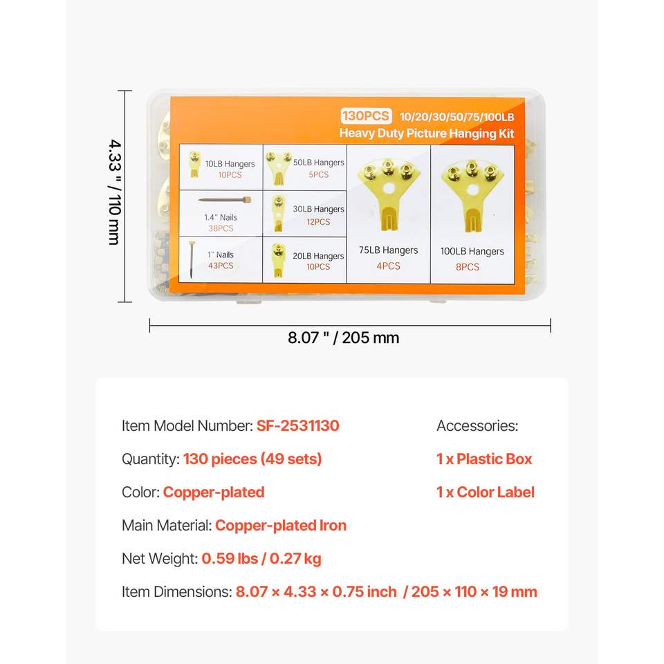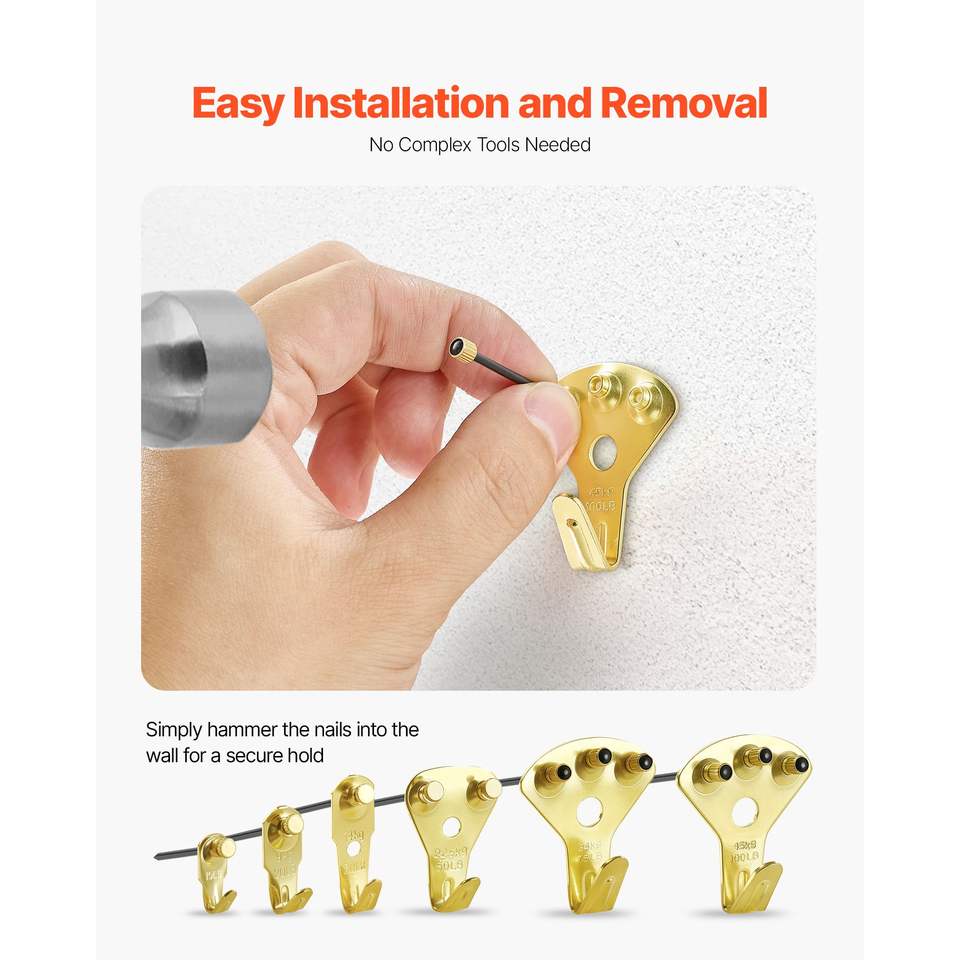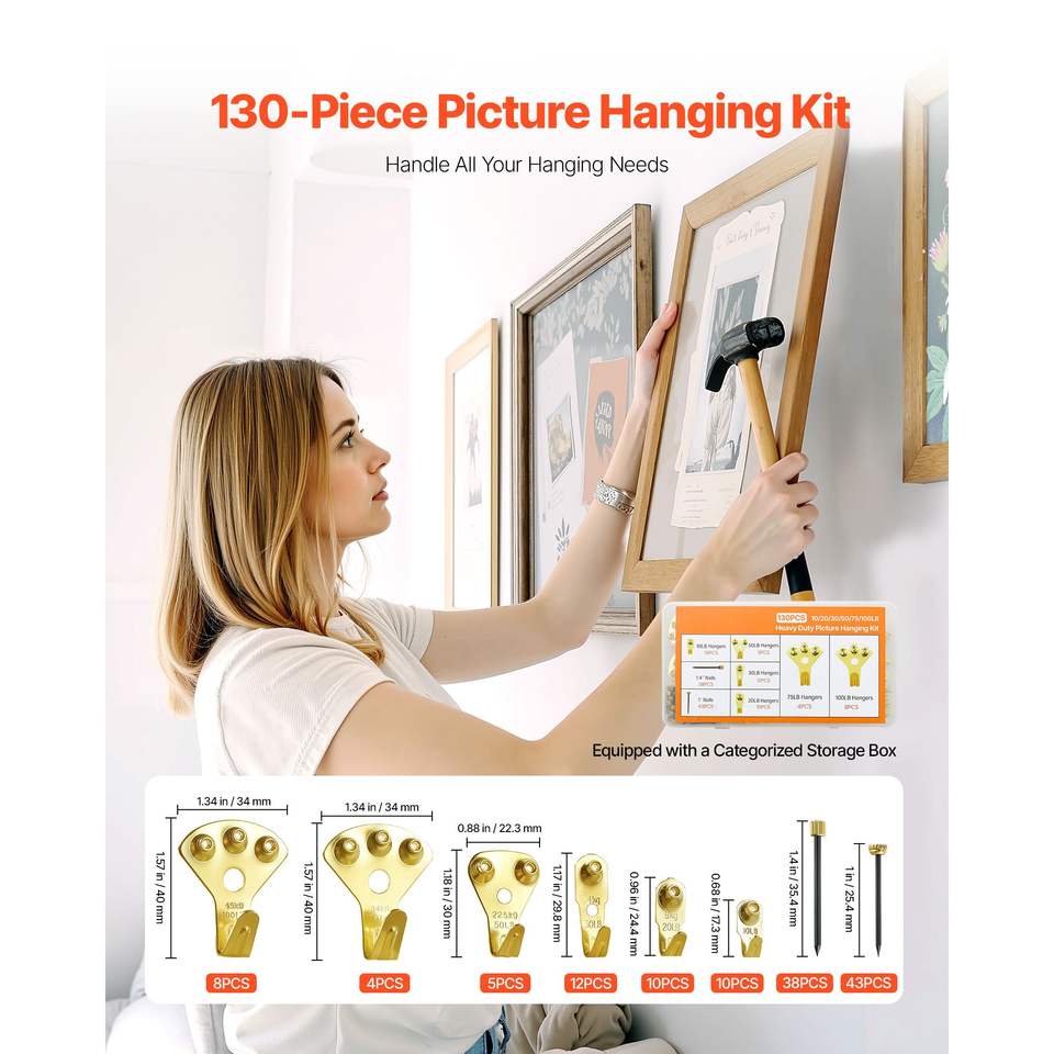 Kit per Appendere Quadri da 130 Pezzi con Ganci in Metallo da 10-100 libbre e Chiodi per Appendere Quadri fino a 45 kg