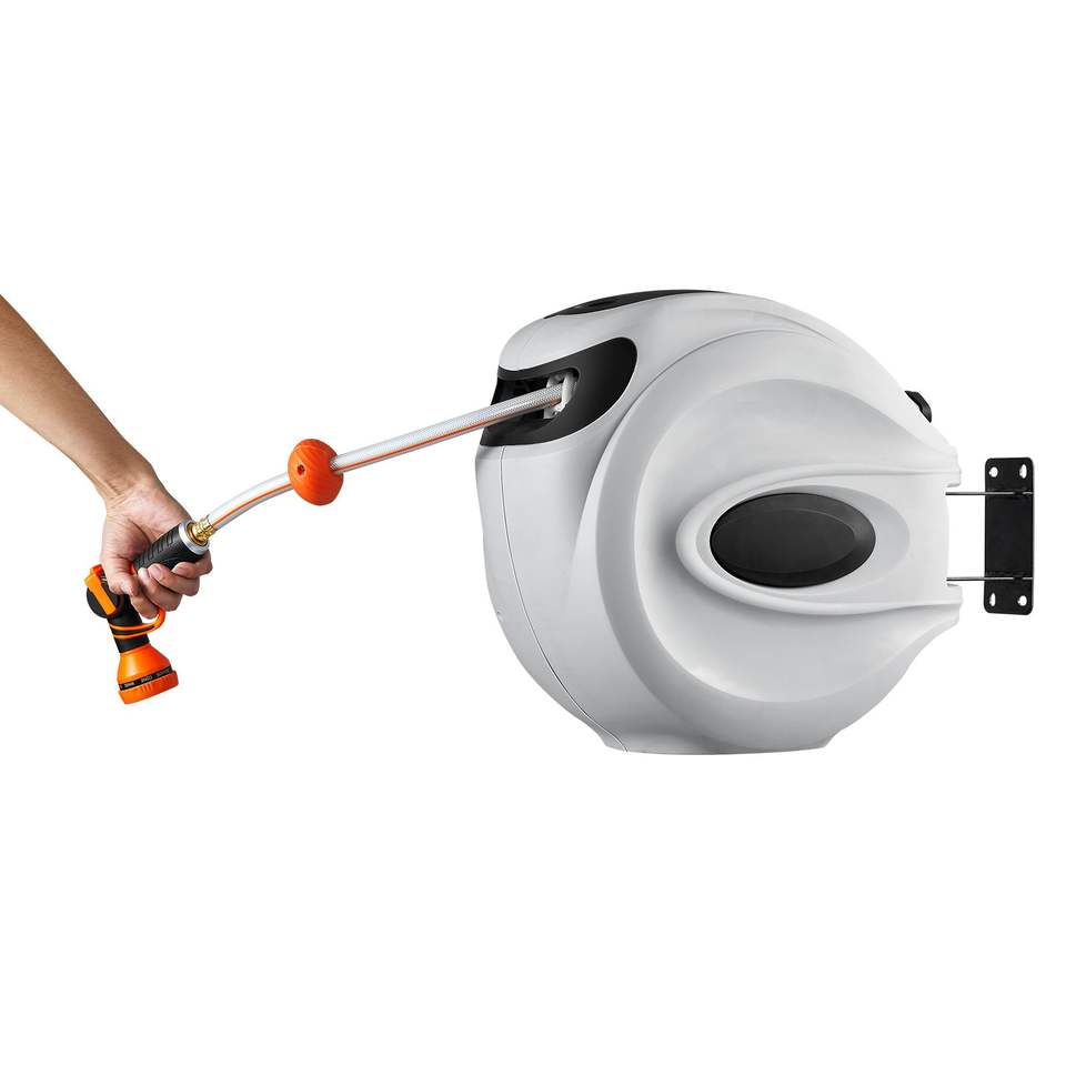 Avvolgitubo da Giardino Retrattile da 40 Metri, 1/2 Pollice, con Staffa Girevole a 180 Gradi e Ugello a 9 Getti, Montaggio a Parete