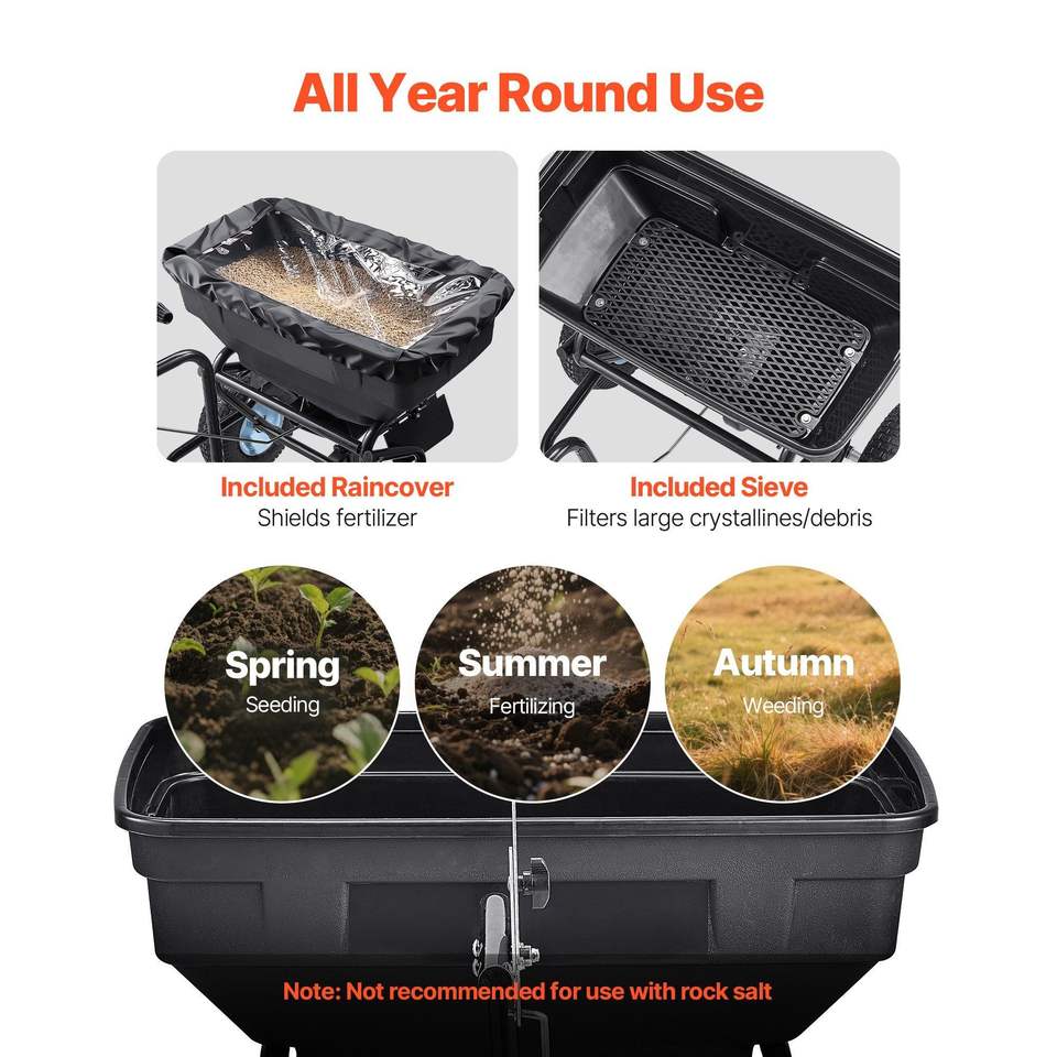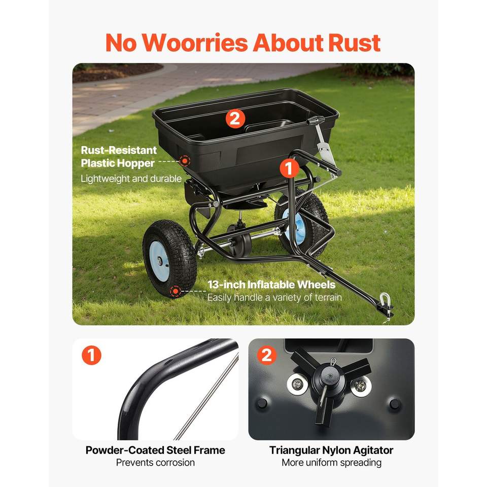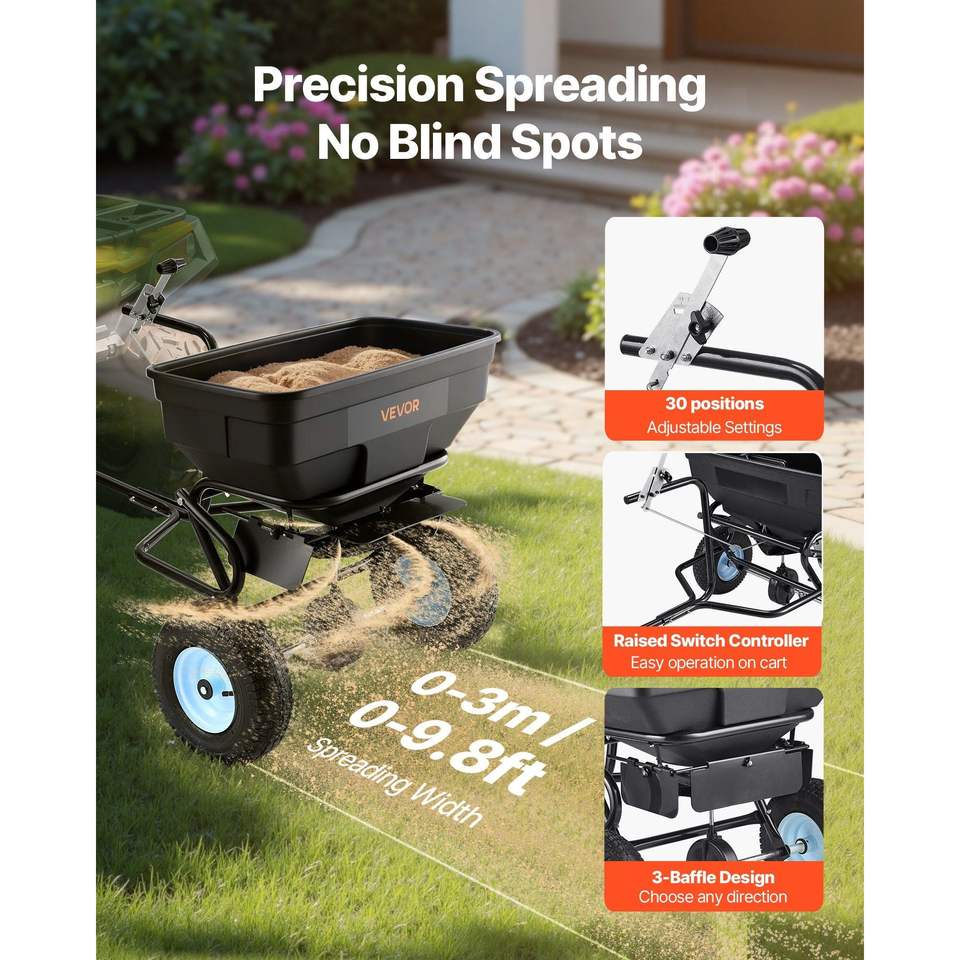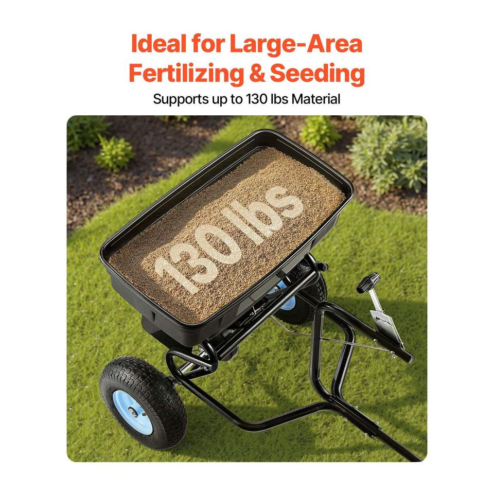 Spargitore da Giardino Trainabile con Capacità di 130 LBS, 30 Impostazioni Regolabili, 9,8 Piedi di Larghezza, 13 Pneumatici per Spargimento Fertilizzante