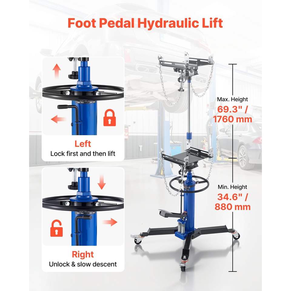 Martinetto Idraulico Telescopico da 600 kg (1322 libbre) con Doppio Telescopio e Pedale per Sollevamento Veicoli