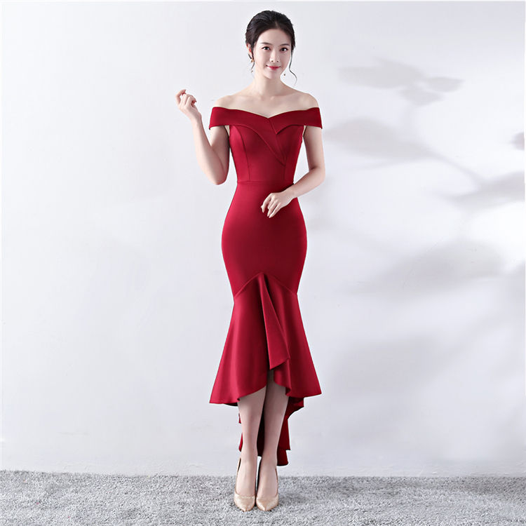 1327 # Sposa Rosso Mid-lungo Matrimonio Coreano Abiti Slim Abiti Da Sera formale Abiti di Promenade per il concorso di bellezza