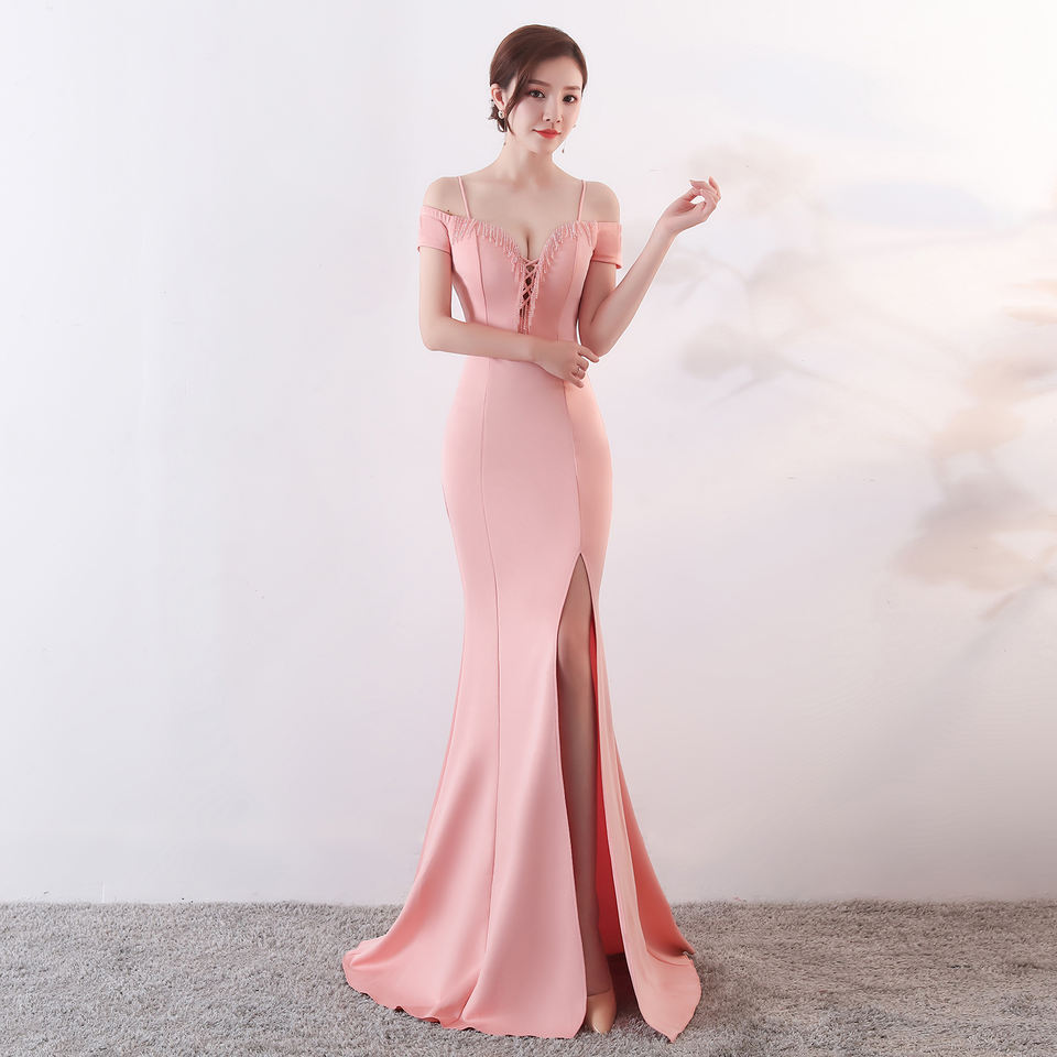 1370 # Ciondolo con diamanti di cristallo con spalline e coda di pesce abito da sera per spettacoli Sexy abito da banchetto