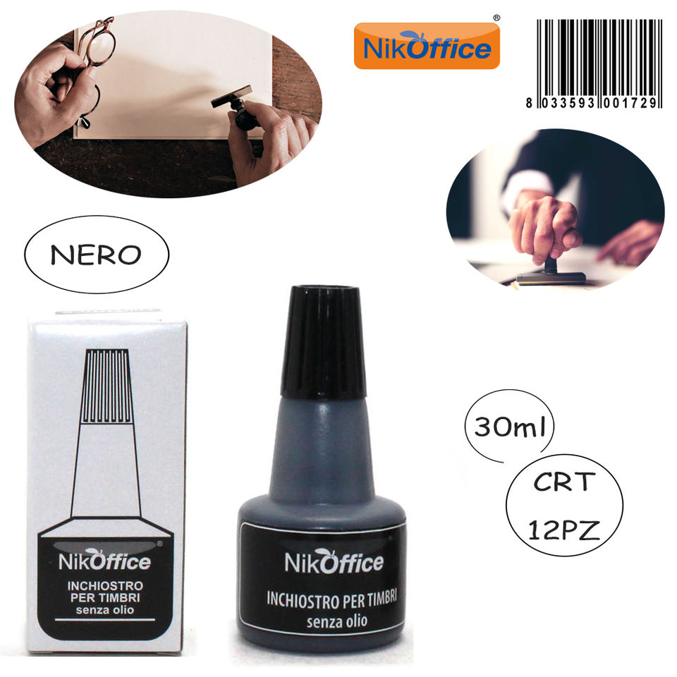 NikOffice Ink Refill For Stamps Black 60ml Oil Free Office Stationery