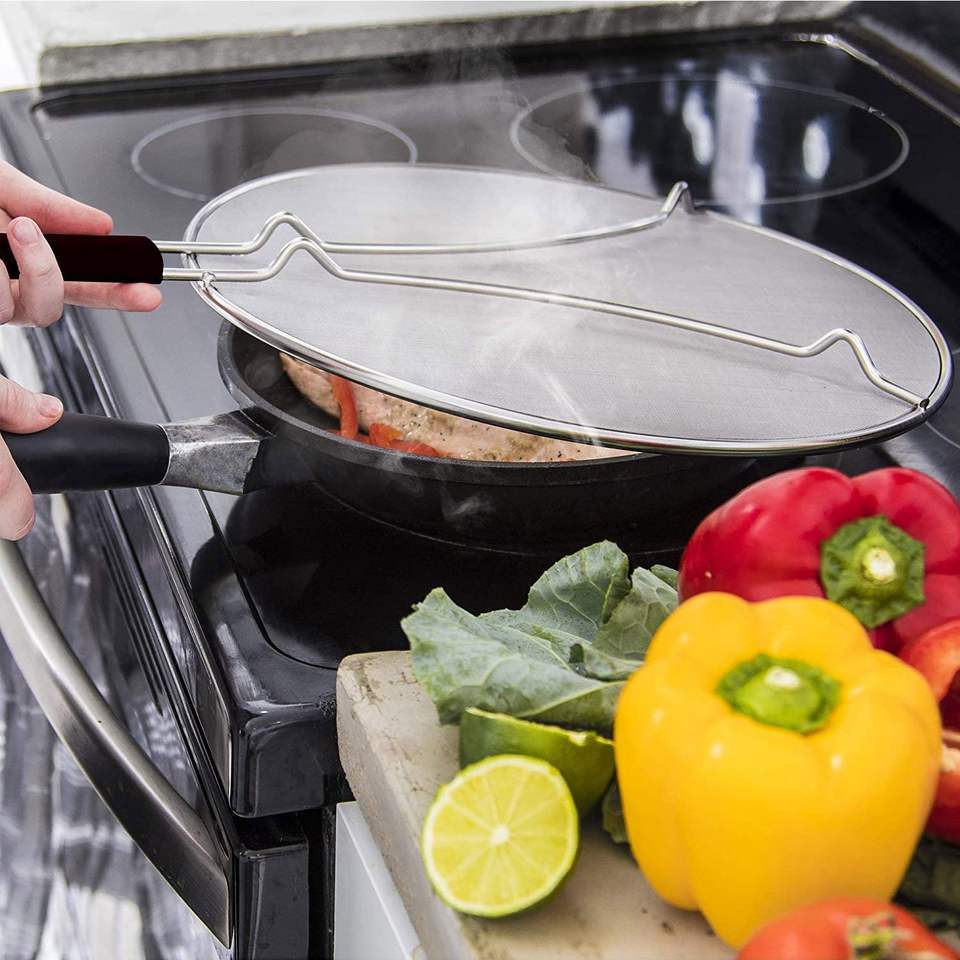 Schermo Antispruzzi in Acciaio Inox a Maglia Fine da 13 Pollici, Strumento da Cucina per Bloccare l'Olio Caldo e Proteggere dai Spruzzi di Grasso