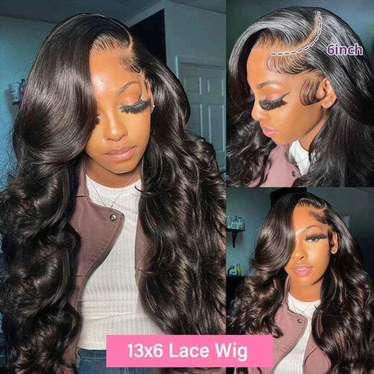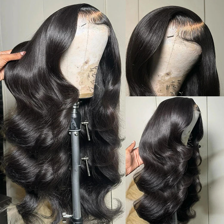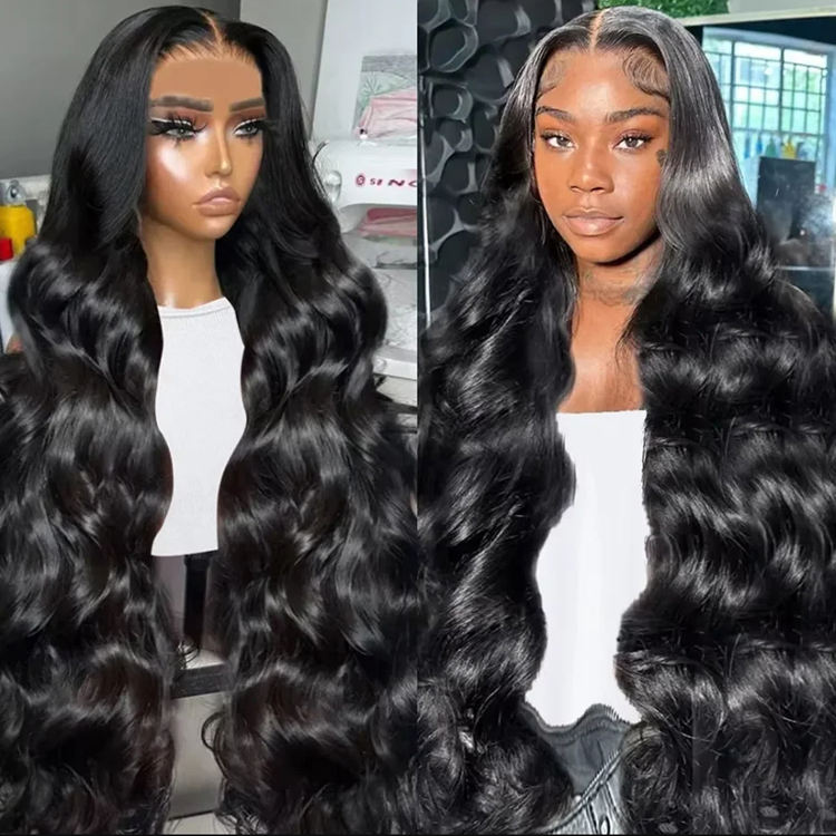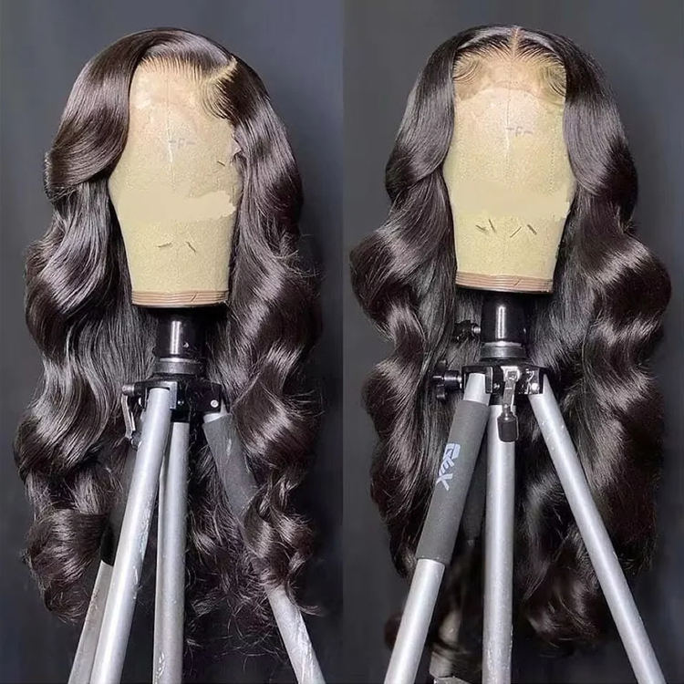 Parrucca senza colla a onda del corpo 13x4 con cuticola vergine nera di colore naturale dei capelli umani allineata HD pizzo trasparente svizzero frontale