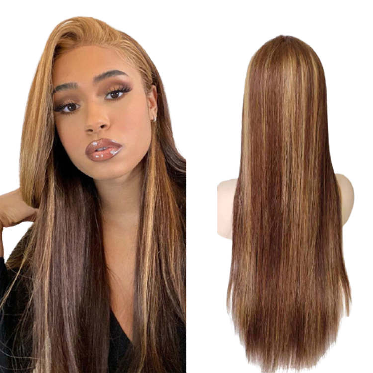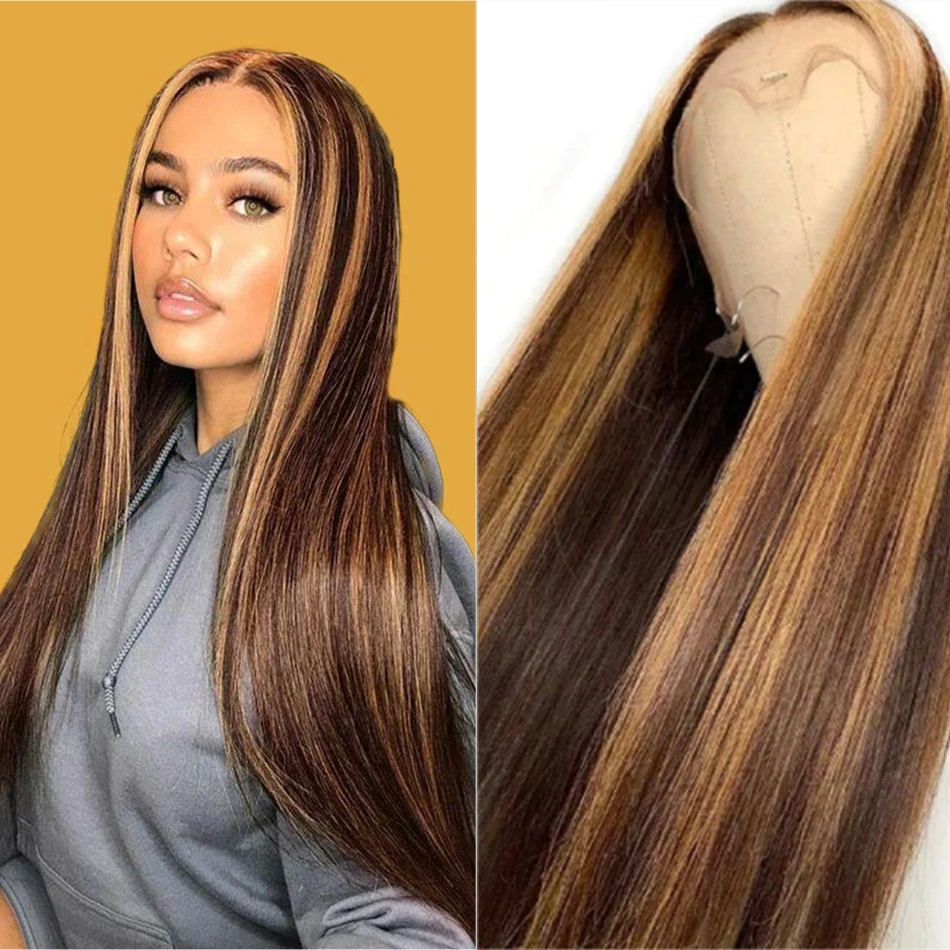 Parrucca Lunga con Frontale in Pizzo 13x4 | Capelli Umani Grezzi Lisci | Pizzo Svizzero & Colore 4/27 Biondo Miele