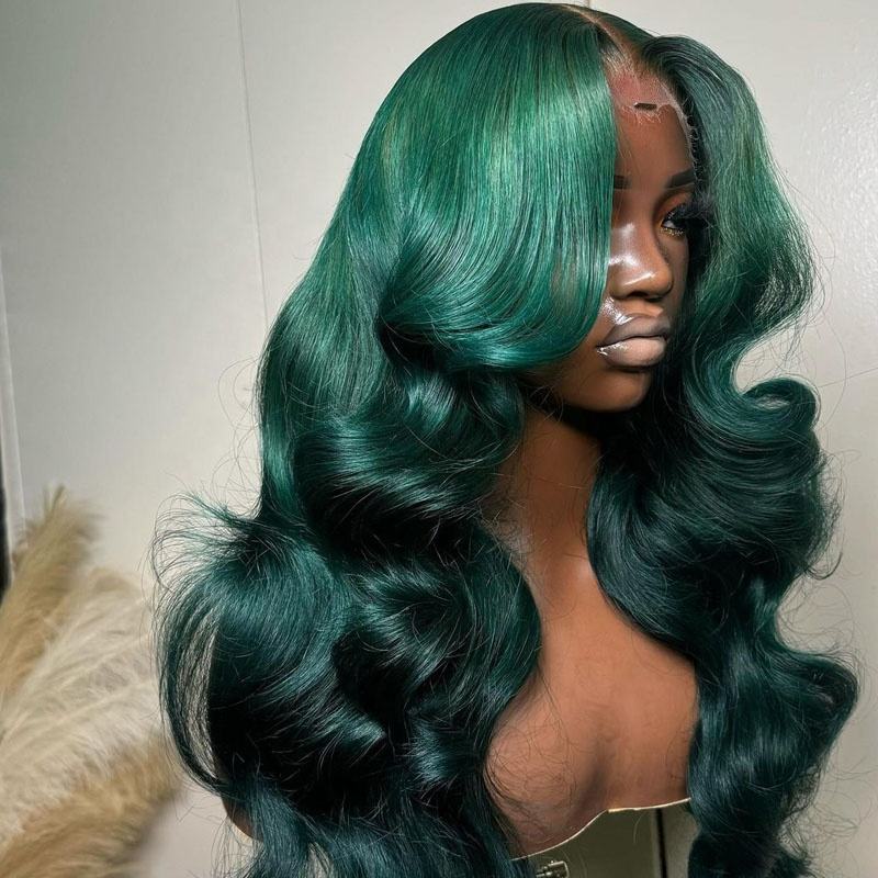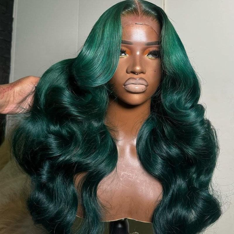 13x6 parrucche con capelli umani completamente frontali di colore verde 100% vergini vietnamiti senza colla per le onde del corpo parrucche Pre-strappate da donna