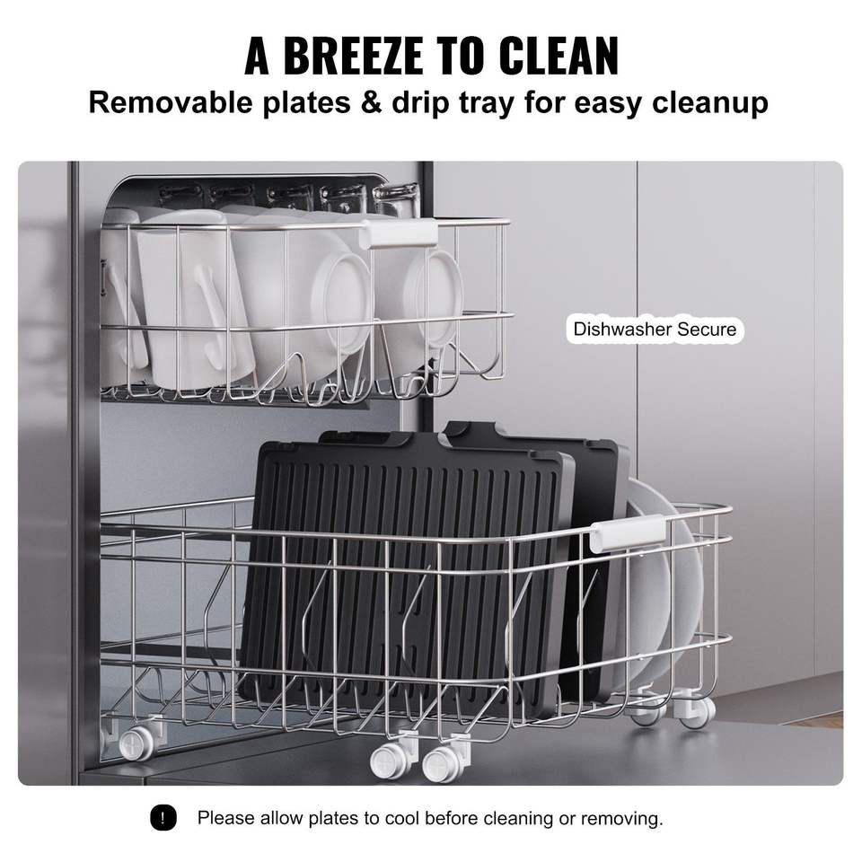 14.5\" Commercial Electric Griddle 1500W Indoor Countertop Stainless Steel Restaurant Teppanyaki Grill Non-Stick Iron Cooking