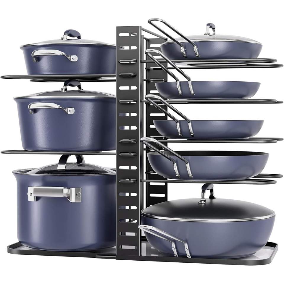 14.55-Inch Height Adjustable 8-Tier Under Cabinet Pots Pans Organizer Kitchen Cabinet Organizers Storage