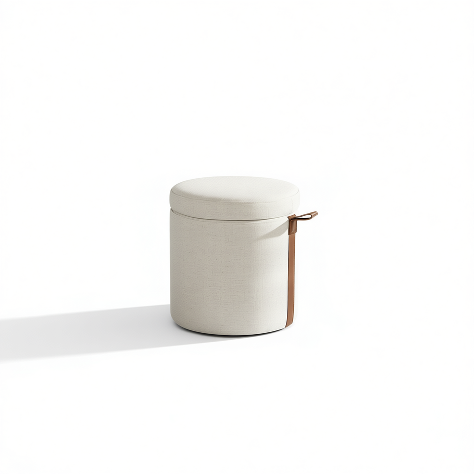 Brandy Round Upholstered Storage Ottoman Flax White 14 In Leather Accent Modern Minimalist Living Room Furniture