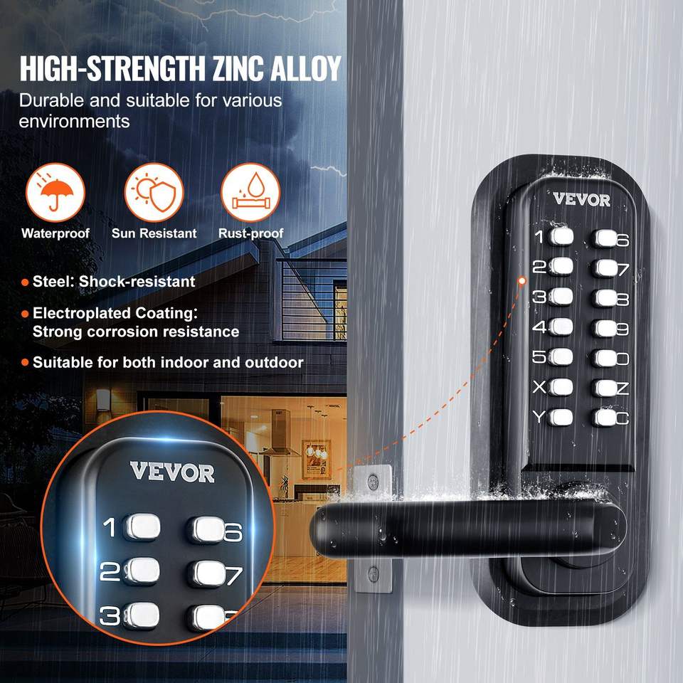 Chiusura porta d'ingresso senza chiave a 14 cifre impermeabile in lega di zinco facile da installare serrature per cancello esterno incastonate su due lati impostate per cantiere