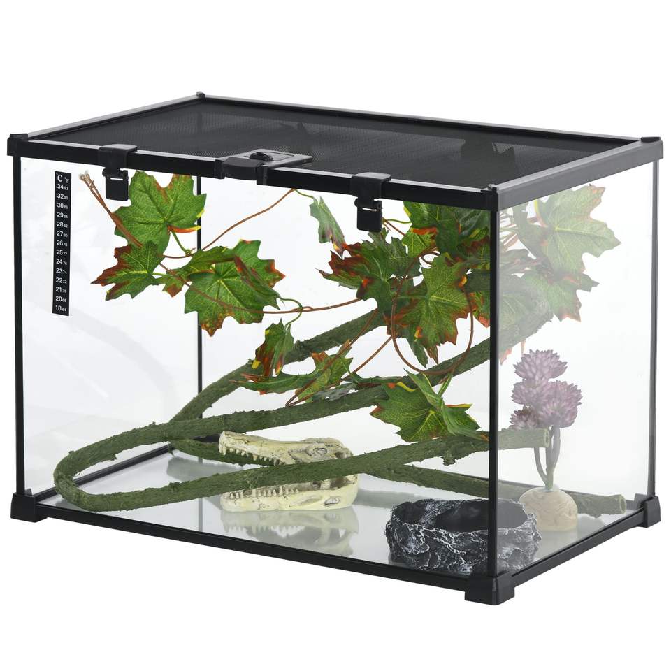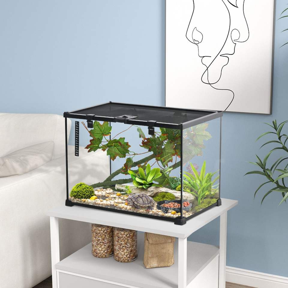 Terrario in Vetro Nero da 14 Galloni con Vista Panoramica, 50x30x35 cm, con Coperchio Scorrevole per l'Allevamento di Rettili e Anfibi