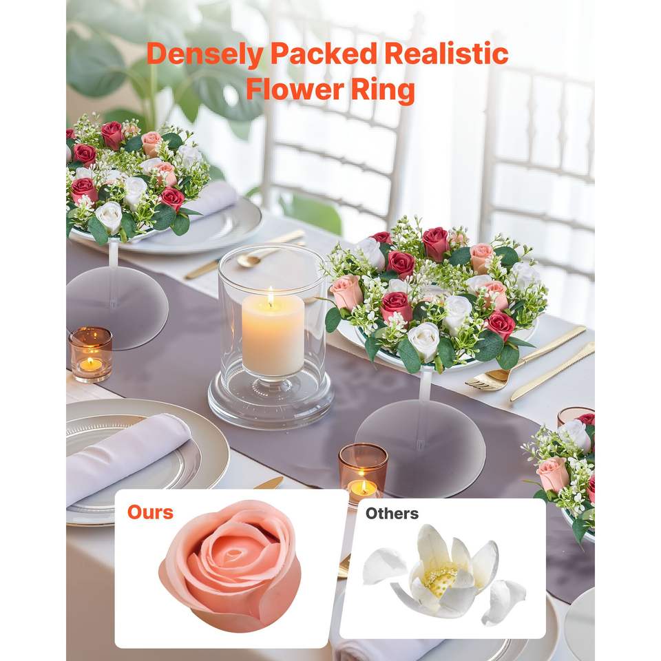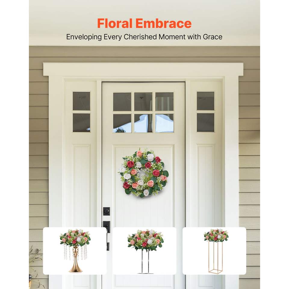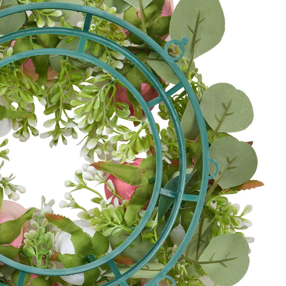 Ghirlanda di Rose Artificiali Rosa e Bianche, Diametro 14 Pollici, Composizione Floreale Centrotavola per San Valentino, Decorazione Verde