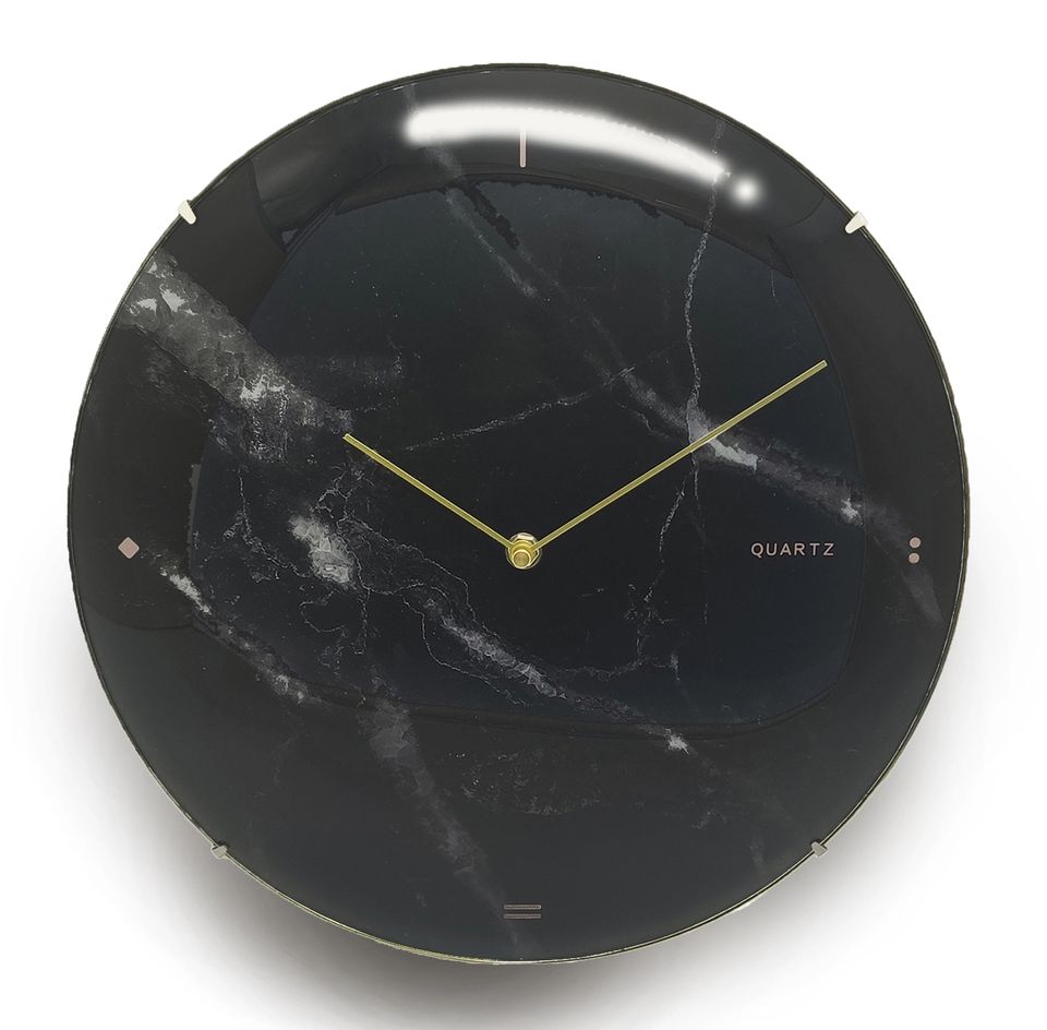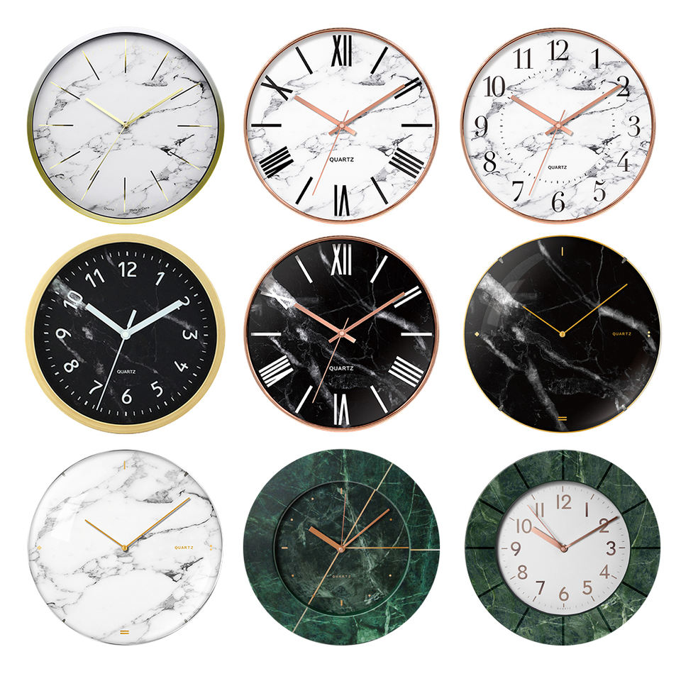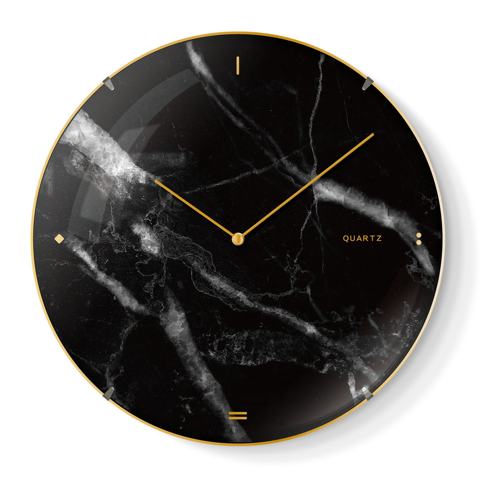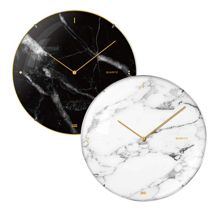 Orologio da parete stampato in marmo di vetro con arco di lusso rotondo grande da 14 pollici orologi neri semplici personalizzati in plastica minimalista