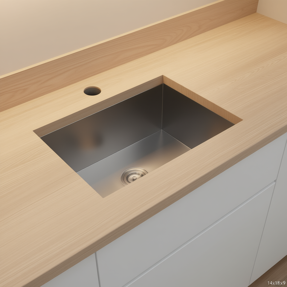 Lavello da cucina sottopiano in acciaio inossidabile 14x18x9 pollici, vasca singola quadrata, superficie lucida, facile da pulire