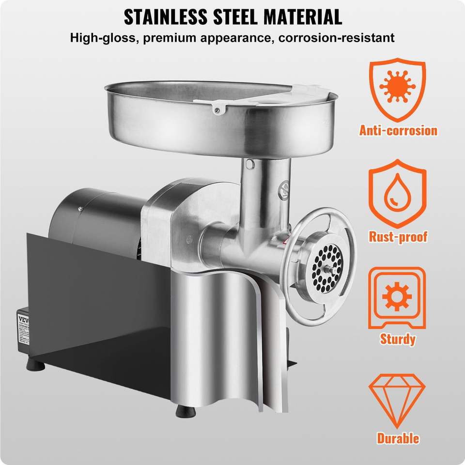 Tritacarne Elettrico Commerciale in Acciaio Inox con Capacità di 14 Libbre/Min, Lama e Piastra di Macinazione per Produzione di Salsicce