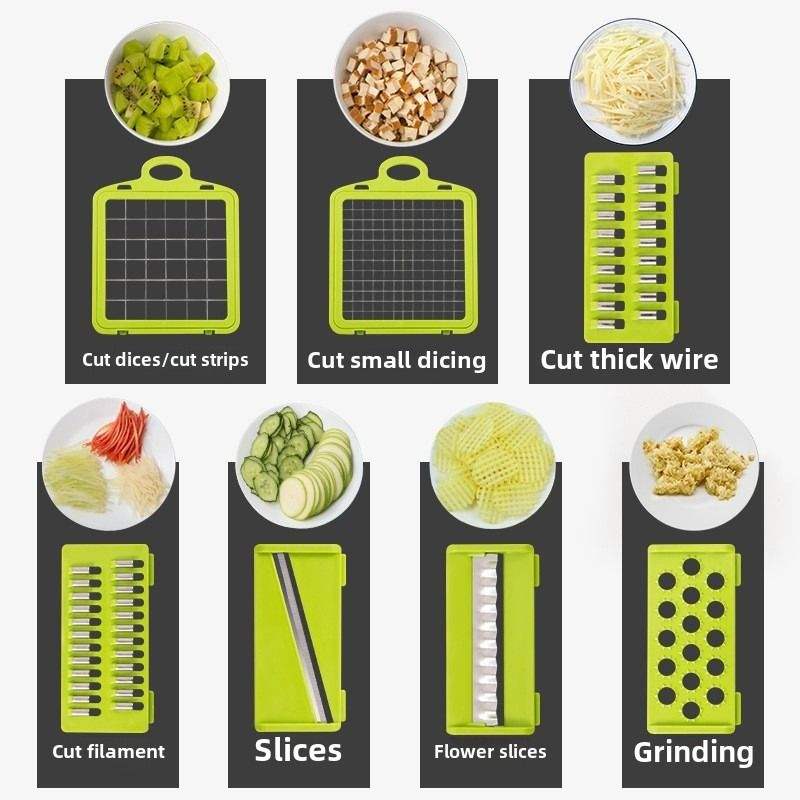 Set di 14 Pezzi per Tagliare Verdure, Affettatrice Rettangolare Multifunzionale Durevole ed Efficiente per Cucina e Preparazione Pasti